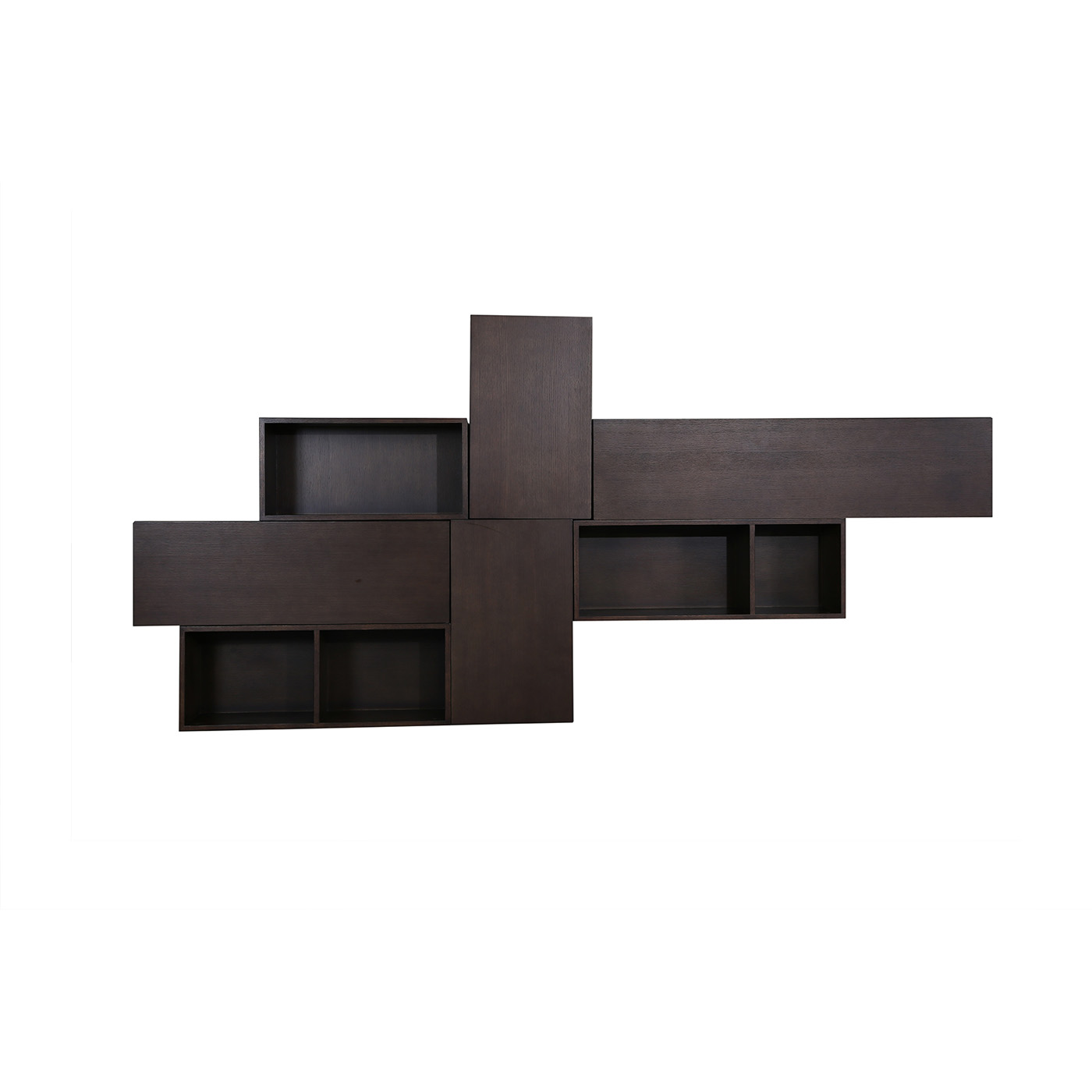 The Decadence is a beautiful contemporary TV unit and can be configured in more the one way. Combination of closed and open wall-mounted units in oak finish